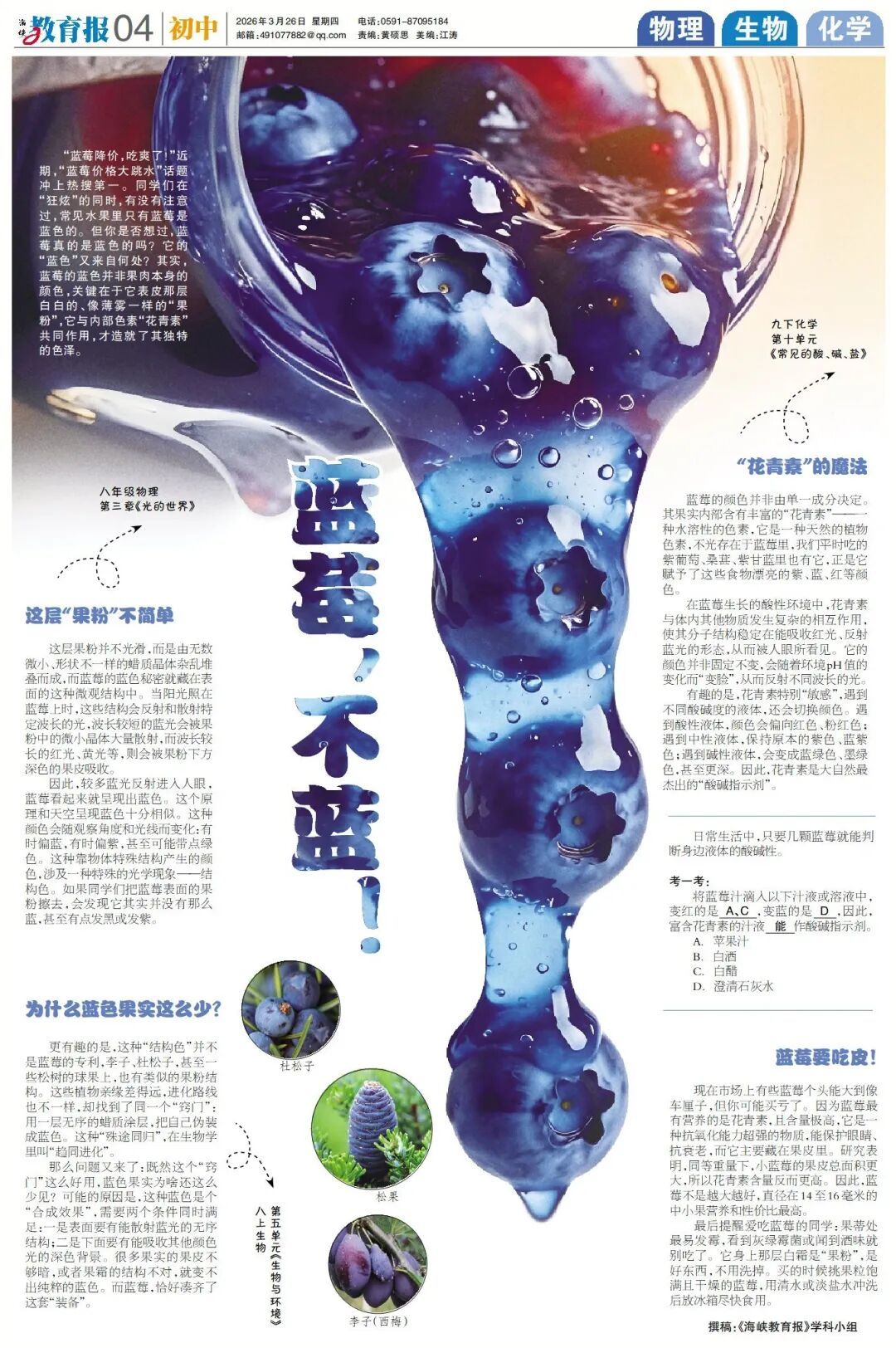 蓝莓不是“蓝”的? 原来是“果粉”在搞事情! 这些小果子藏着光的秘密 物理老师又要上线了: “同学们,注意看,这是蓝光散射!”