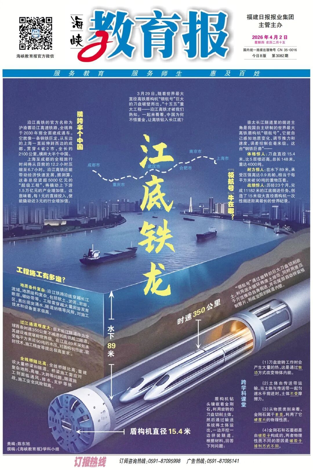 本周《海峡教育报》 新鲜出炉 带你一起了解新闻时事 无论是重大工程建设 还是历史文化探讨 都巧妙关联学科知识点 江底铁龙