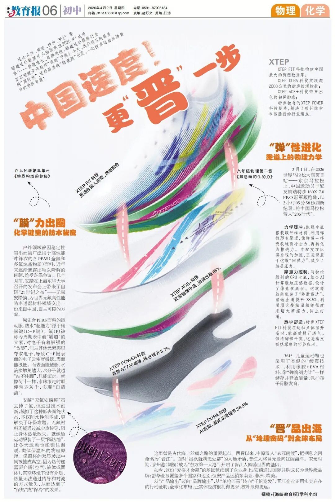 跑鞋里有“黑科技”? 运动服里有“物理题”? 版面聚焦 福建运动鞋服科技 梳理物理力学相关知识 “桃”里桃气
