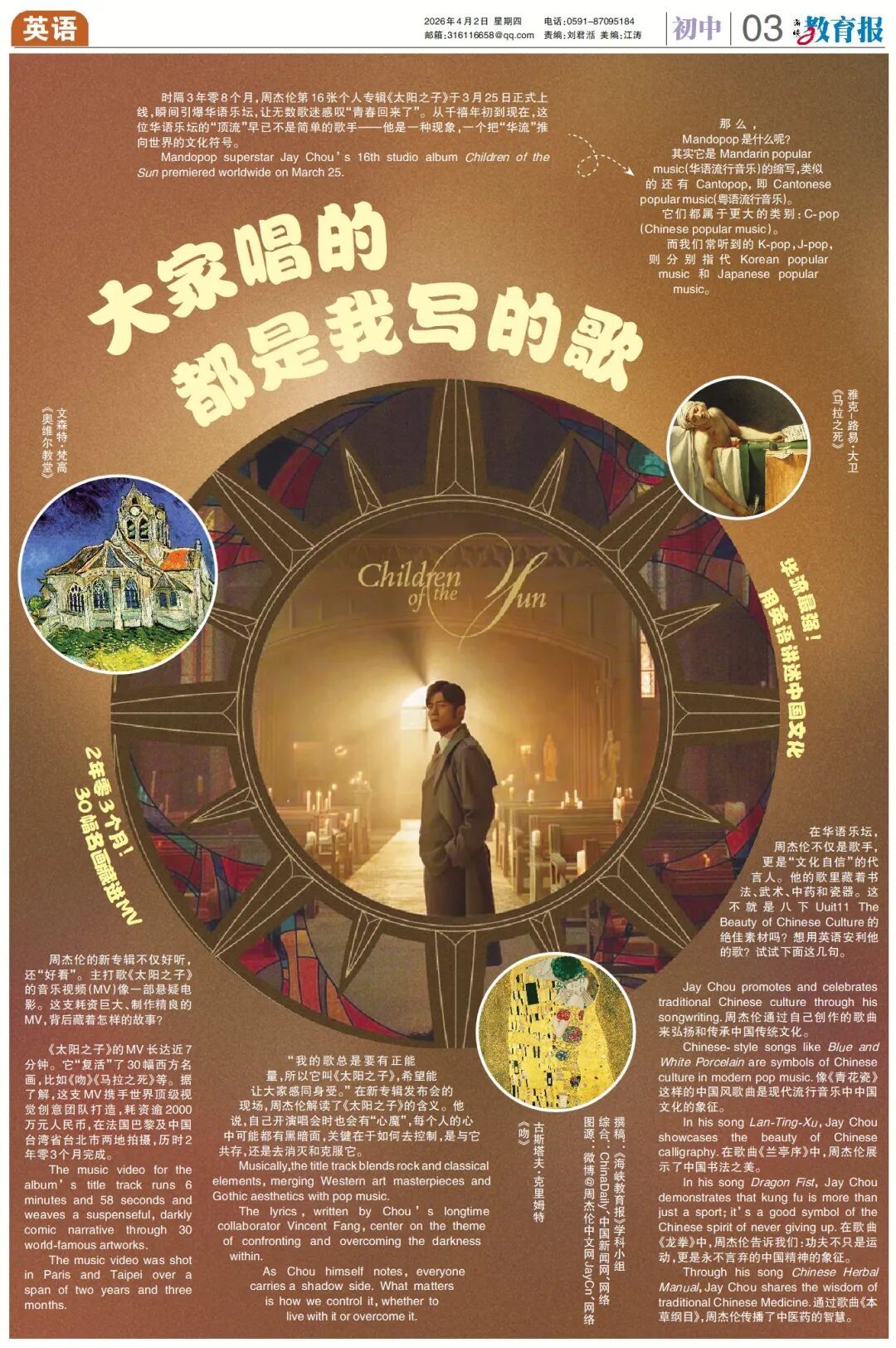 时隔3年零8个月 周杰伦第16张个人专辑 正式上线 版面以此为切入点 用英语探讨 歌曲中蕴含的 中国传统文化元素 搭回来