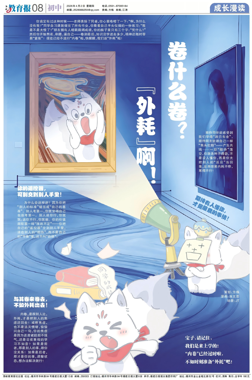 现在已经不流行“内卷” 我们该“外耗”啦 成长漫 读用轻松幽默的漫画 和通俗的文字 教你正确对待竞争 保持良好心态 《海峡教育报》将新闻资讯与学科知识巧妙融合,让同学们在了解新鲜事的同时,还能学到有用的学科知识。 |