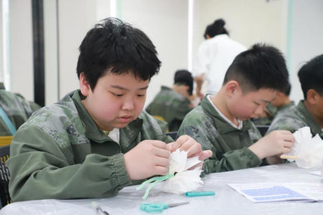 ▲动手科学实践,探索纸巾里的材料奥秘 本次研学不仅在于“观”,更在于“行”。活动的科学实践环节,同学们化身“材料研究员”和“创意工程师”。在研学导师的指导下,大家利用普通的纸巾,动手完成了一系列科学小实验:探究纸巾的吸水性、韧性与纤维排列的关系;测试不同层数纸张的承重结构。随后,同学们将科学认知与艺术创意结合,进行“纸花创作”等手工实践,亲身体验从基础材料到创意产品的设计制作过程。这一过程将材料科学、力学原理与创新设计融为一体,在动手操作中深化了对产品背后科学原理的理解。