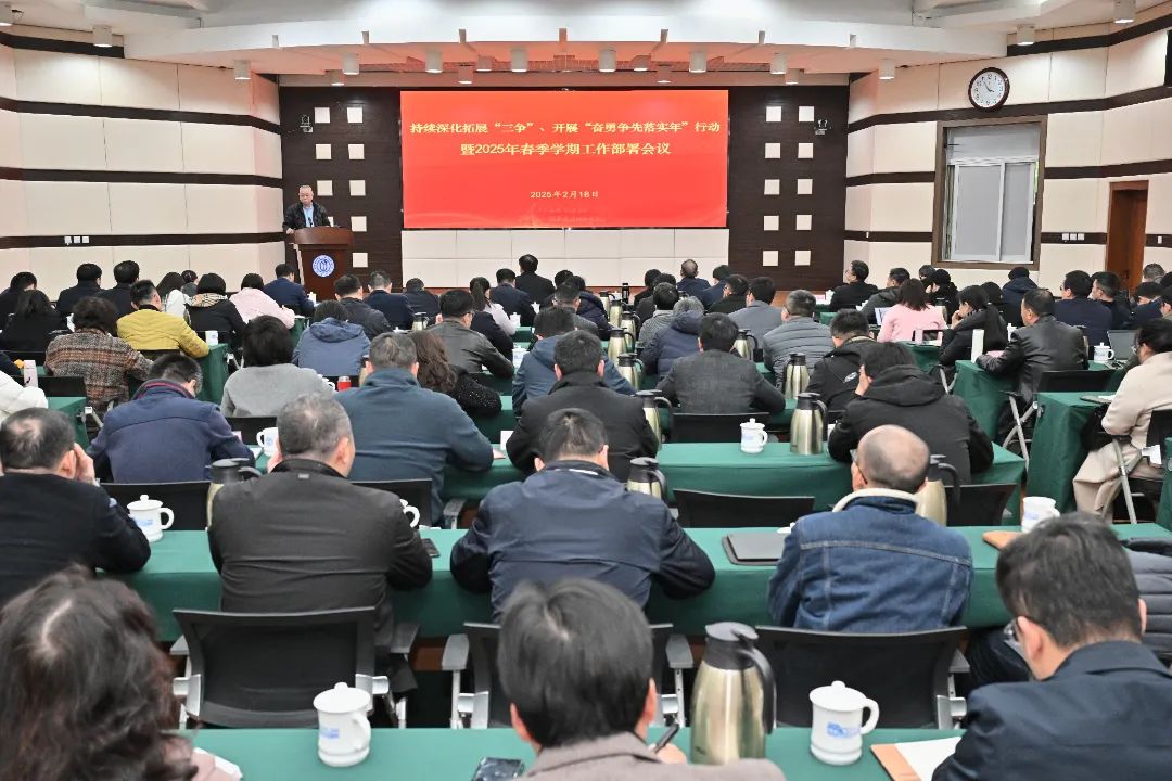2月18日,闽江学院召开持续深化拓展“三争”、开展“奋勇争先落实年”行动暨2025年春季学期工作部署会议。校党委书记叶世满主持会议并讲话,校长舒继武部署2025年重点工作任务。全体校领导、全校中层干部参加会议。